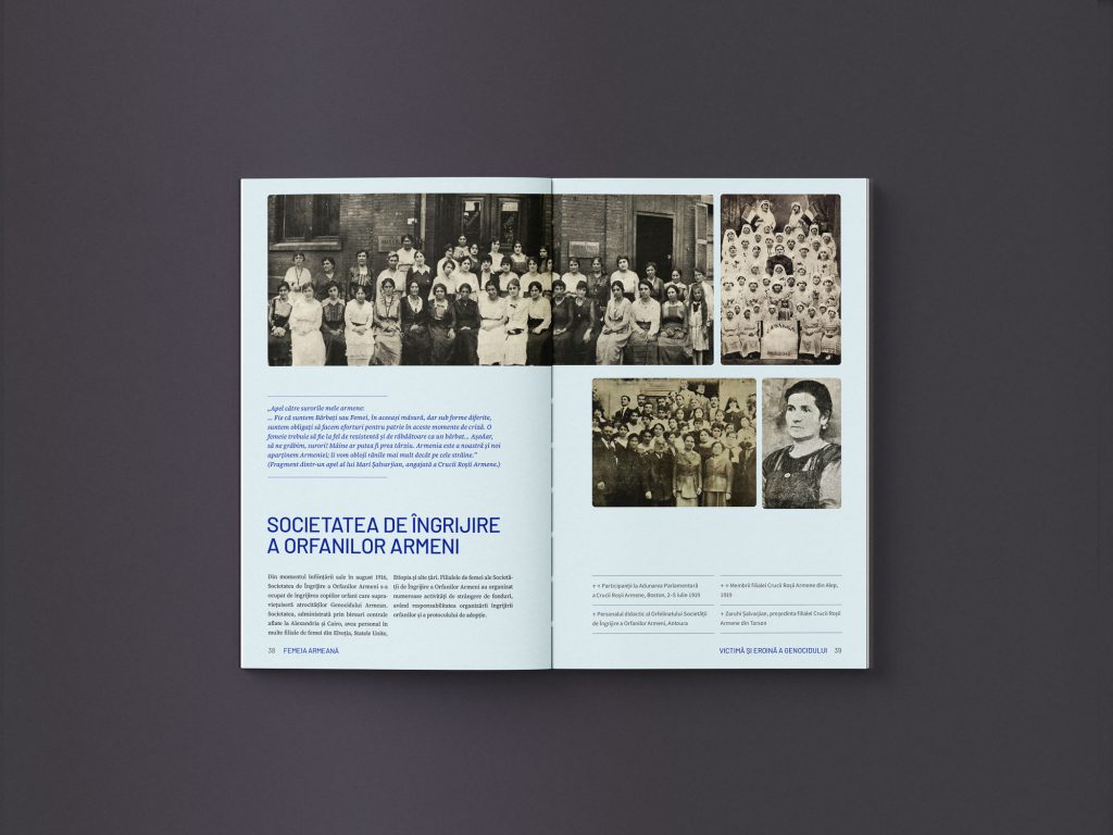 Armenian Women: Heroines and Victims of the Genocide is a print catalog designed for the Armenian Cultural Center’s exhibition at the National Theatre in Bucharest. The publication explores the lives of Armenian women during the 1915 genocide, combining archival photographs, personal testimonies, and historical research in a sober, respectful visual language that highlights resilience, identity, and memory.