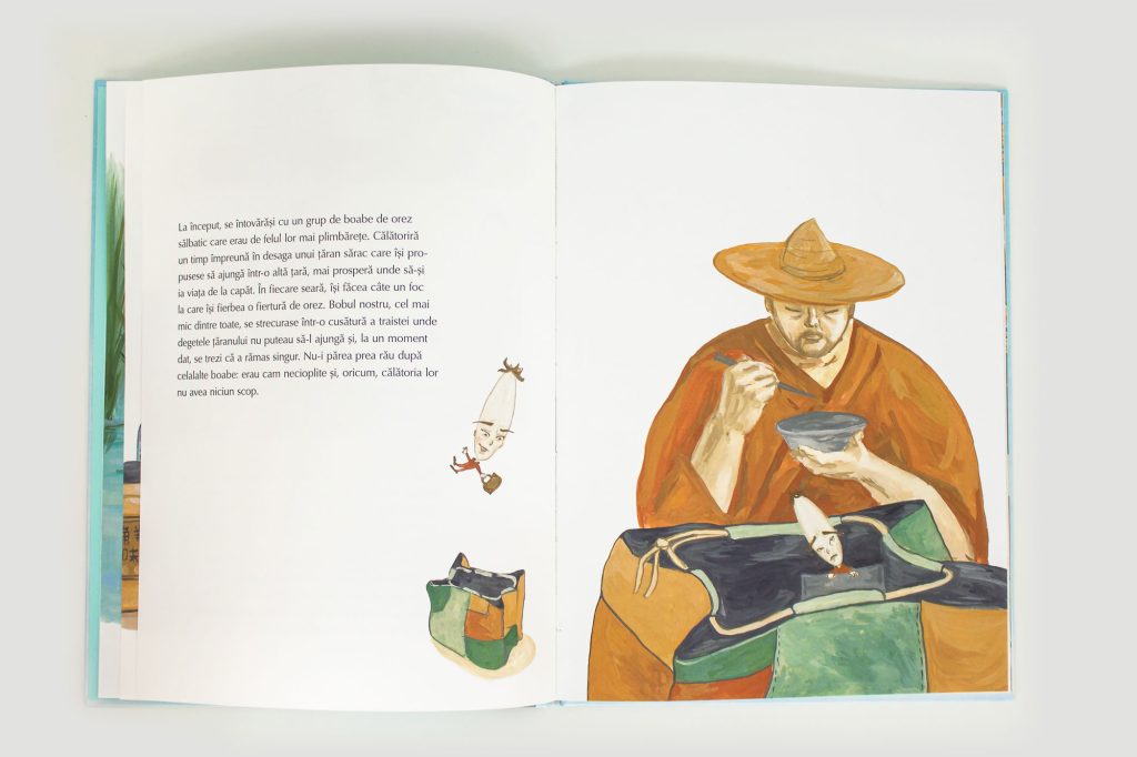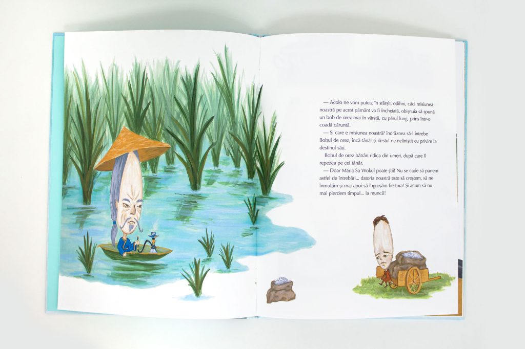 The Story of a Rice Grain is a picturebook for children around 5-8 years old. The story is written by Adina Popescu and the project was coordinated by dr.conf.univ. Stela Lie and asist. dr. Giulia Crețulescu.